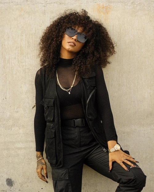 Altura: 1,71 m Manequim: 43 Cor do Cabelo: Castanho Escuro Cor dos Olhos: Castanho Escuro Cor da Pele/Etnia: Negra Busto/Tórax: 86 cm Cintura: 74 cm Quadril: 103 cm Calçado: 37