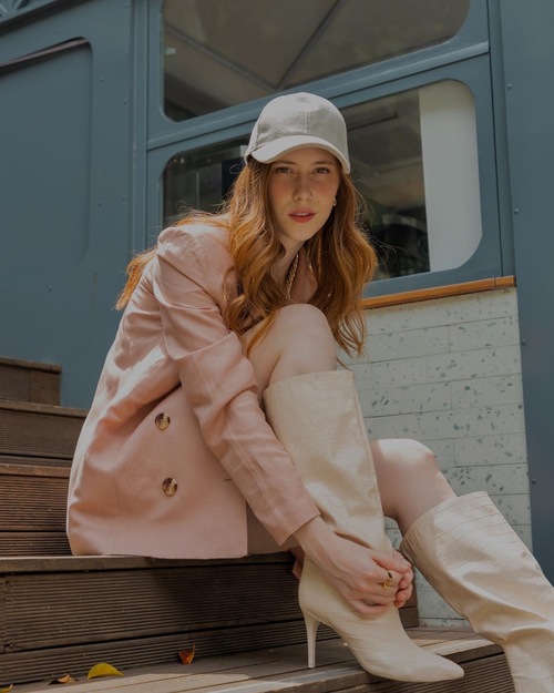 Altura: 1,73 m Manequim: 36 Cor do Cabelo: Ruivo Cor dos Olhos: Castanho Claro Cor da Pele/Etnia: Branca Busto/Tórax: 83 cm Cintura: 63 cm Quadril: 94 cm Calçado: 36