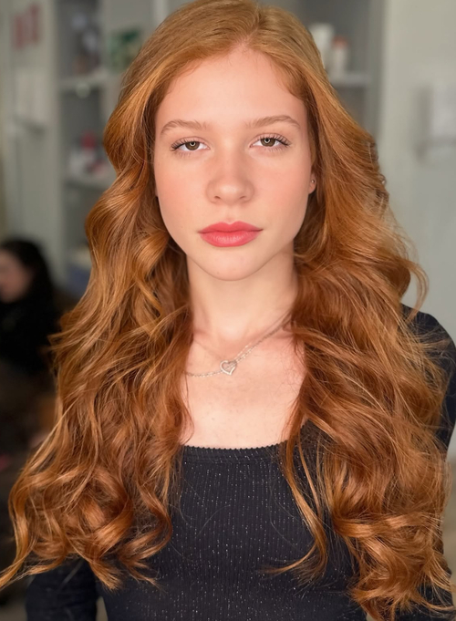 Altura: 1,67 m Manequim: 36 Cor do Cabelo: Ruivo Cor dos Olhos: Castanho Claro Cor da Pele/Etnia: Branca Busto/Tórax: 78 cm Cintura: 60 cm Quadril: 86 cm Calçado: 36