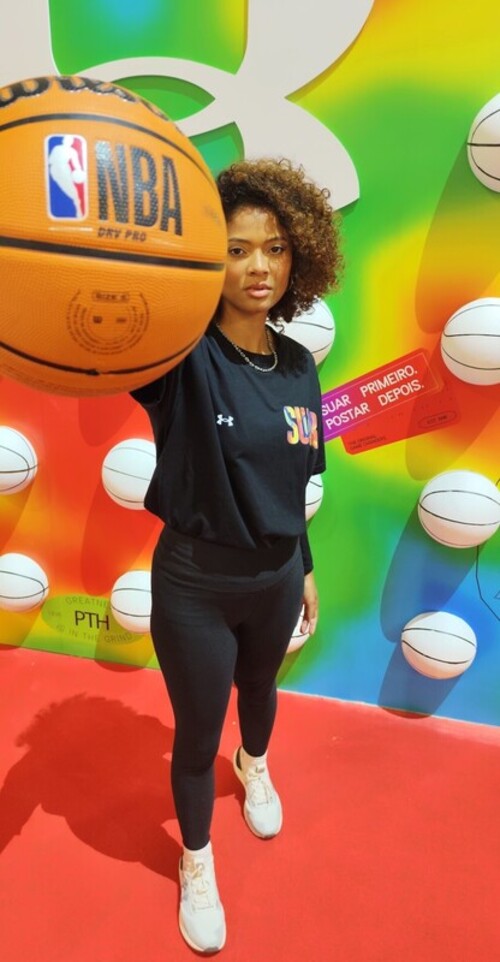 Altura: 1,68 m Manequim: 38 Cor do Cabelo: Castanho Escuro Cor dos Olhos: Castanho Escuro Cor da Pele/Etnia: Negra Busto/Tórax: 87 cm Cintura: 75 cm Quadril: 96 cm Calçado: 38