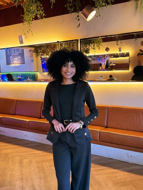 Altura: 1,76 m Manequim: 36 Cor do Cabelo: Castanho Escuro Cor dos Olhos: Castanho Escuro Cor da Pele/Etnia: Negra Busto/Tórax: 82 cm Cintura: 63 cm Quadril: 90 cm Calçado: 38
