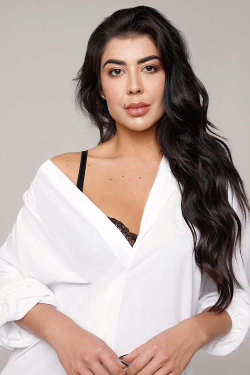 Altura: 1,72 m Manequim: 38 Cor do Cabelo: Castanho Escuro Cor dos Olhos: Castanho Escuro Cor da Pele/Etnia: Morena Busto/Tórax: 90 cm Cintura: 68 cm Quadril: 100 cm Calçado: 39