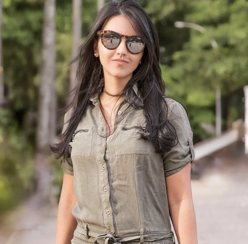 Altura: 1,56 m Manequim: 36 Cor do Cabelo: Castanho Escuro Cor dos Olhos: Castanho Escuro Cor da Pele/Etnia: Morena Busto/Tórax: 82 cm Cintura: 60 cm Quadril: 93 cm Calçado: 34