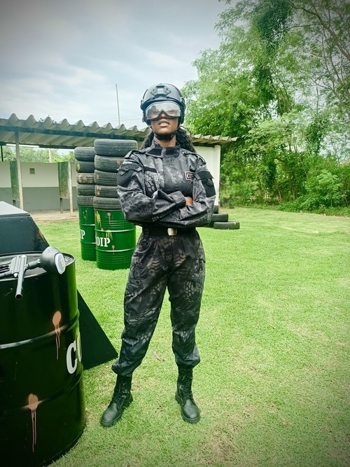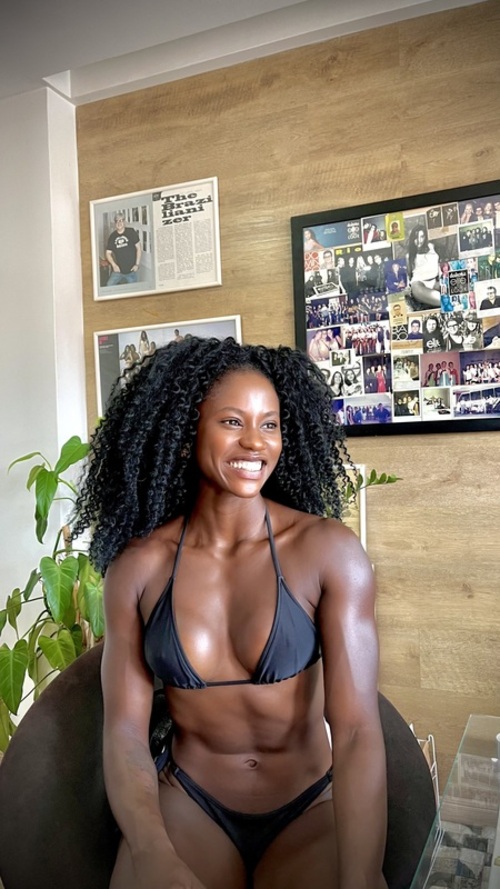 Altura: 1,71 m Manequim: 37 Cor do Cabelo: Castanho Escuro Cor dos Olhos: Castanho Escuro Cor da Pele/Etnia: Negra Busto/Tórax: 85 cm Cintura: 64 cm Quadril: 95 cm Calçado: 37