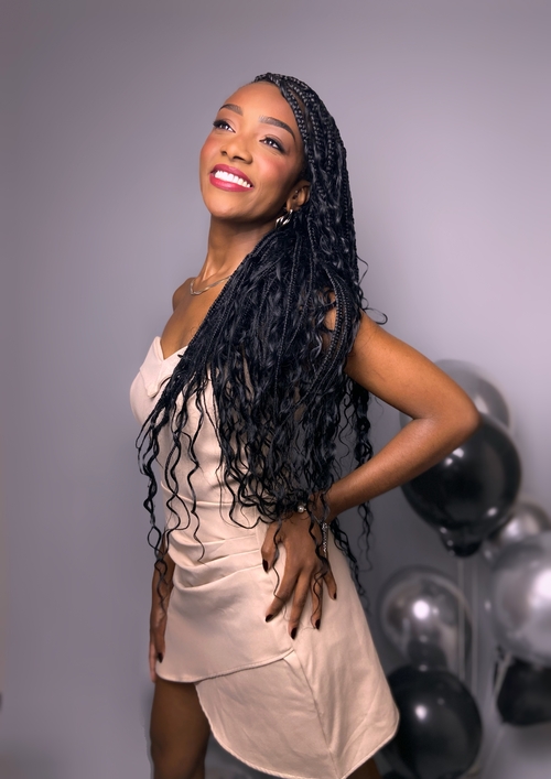 Altura: 1,65 m Manequim: 36 Cor do Cabelo: Castanho Escuro Cor dos Olhos: Castanho Escuro Cor da Pele/Etnia: Negra Busto/Tórax: 76 cm Cintura: 60 cm Quadril: 85 cm Calçado: 35