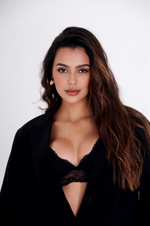 Altura: 1,72 m Manequim: 38 Cor do Cabelo: Castanho Claro Cor dos Olhos: Castanho Escuro Cor da Pele/Etnia: Morena Busto/Tórax: 87 cm Cintura: 62 cm Quadril: 91 cm Calçado: 40