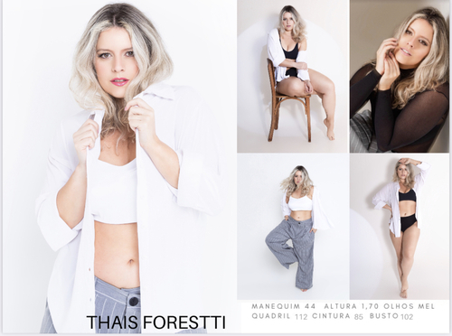 Altura: 1,68 m Manequim: 42 Cor do Cabelo: Loiro Cor dos Olhos: Castanho Claro Cor da Pele/Etnia: Branca Busto/Tórax: 99 cm Cintura: 80 cm Quadril: 110 cm Calçado: 38